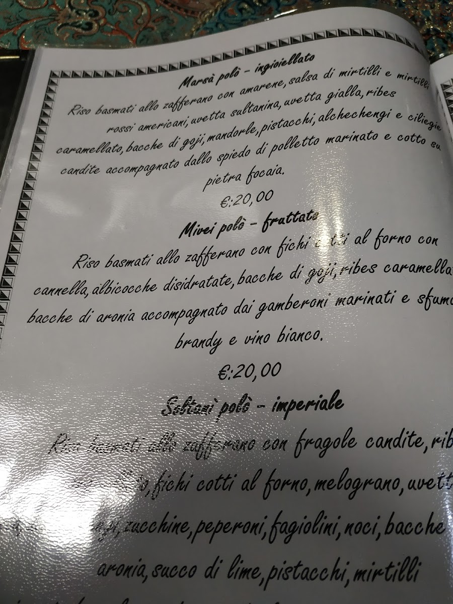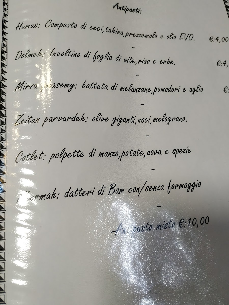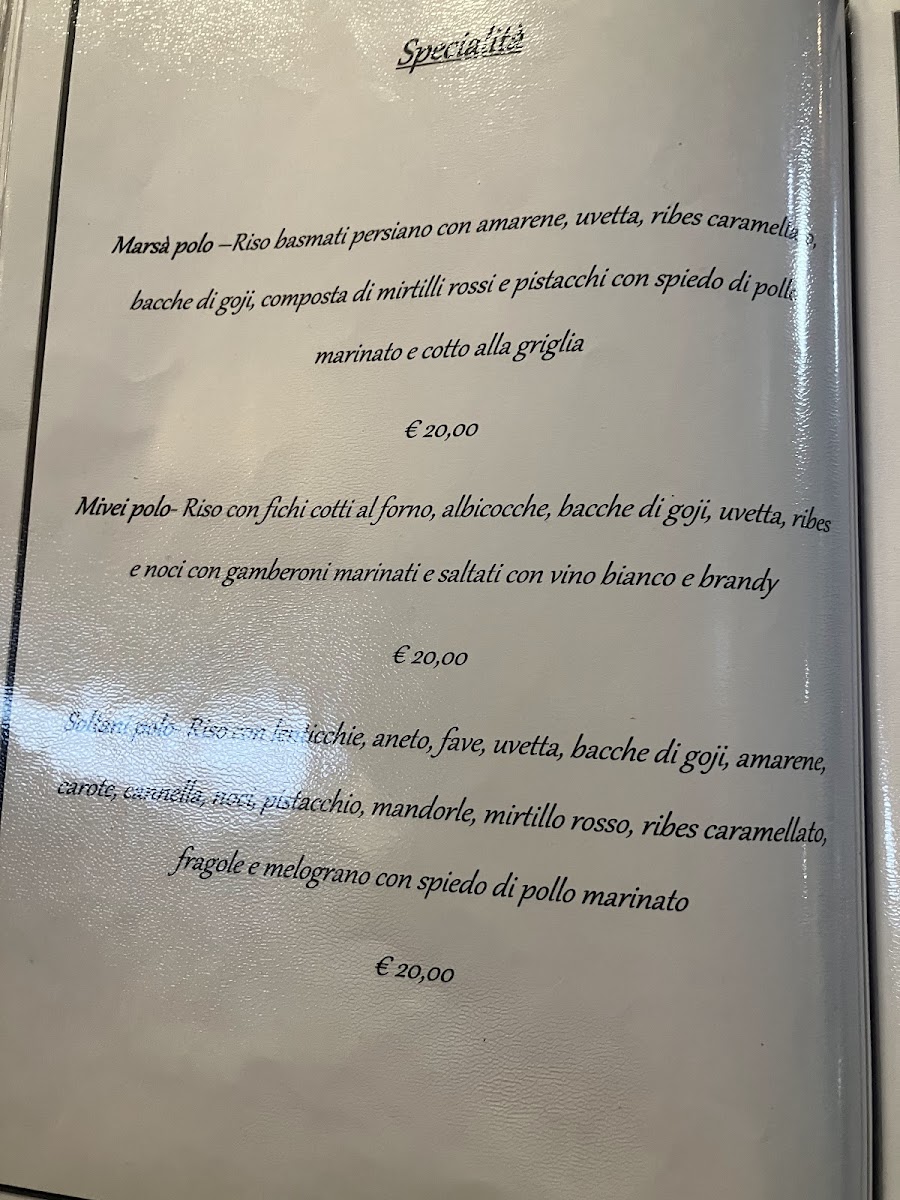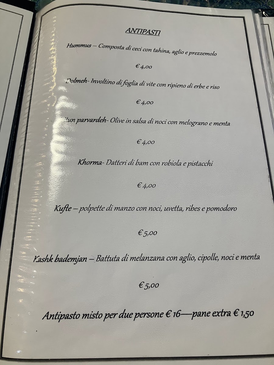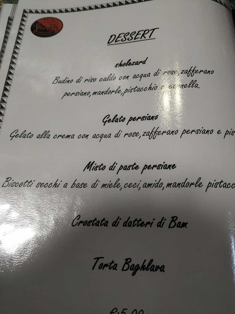 Guests can expect to enjoy special dishes like Riso Ingioiellato or the Riso Imperiale Con Lo Spiedo Di Pollo Marinato, which showcase traditional Persian ingredients prepared with care. Lighter options like an Antipasto Misto provide a gentle start, while desserts such as Baklava and Crostata Di Datteri Di Bam offer a subtle sweetness to end the meal. The selection of aromatic teas, including The Nero Aromatizzato, complements the flavors beautifully and invites moments of calm reflection.